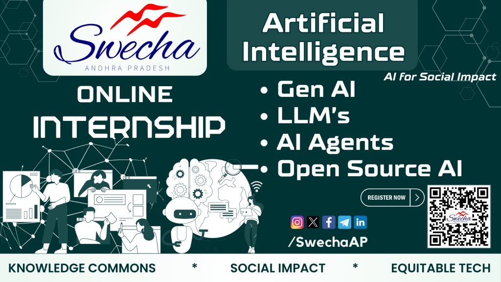 Swecha Andhra Pradesh presents an Online AI Internship 2026 designed to equip students with cutting-edge skills in Artificial Intelligence, Generative AI, and Open Source AI.